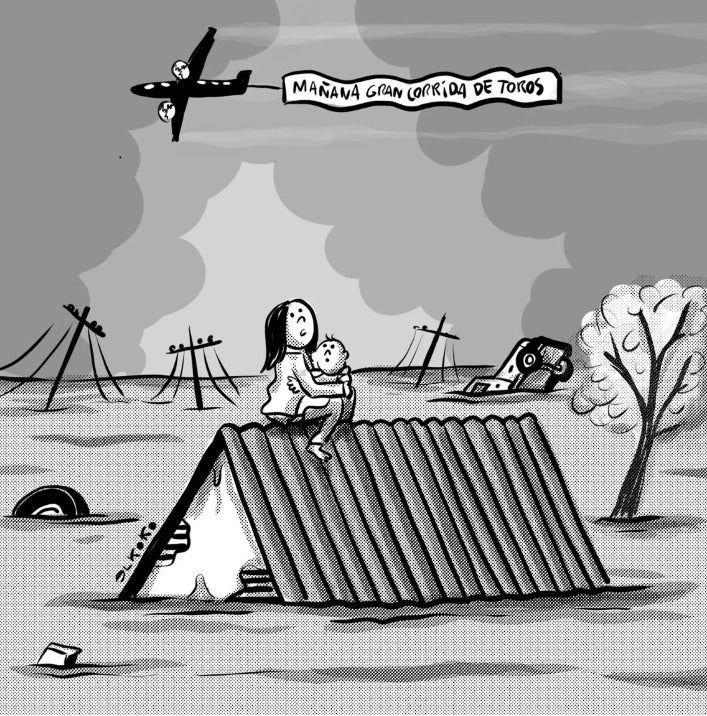 Si parlem de despropòsits, l’últim el tenim ben recent i ens mostra que la realitat sempre pot superar la ficció. Dissabte, mentre milers i milers de persones eixien al carrer i demanaven la dimissió de Carlos Mazón, la televisió pública valenciana emetia un especial de corregudes de bous. En comptes de retransmetre en directe la massiva manifestació de València, els telespectadors podien vore Enrique Ponce o Vicente Barrera en una històrica correguda a Alacant l’any 1997. Qüestió de prioritats: els bous els importen, les persones, gens ni mica. Els va la sang i la mort. Tota una fantàstica, brillant, magnífica programació, clar que sí. Per a mi, que À Punt en una vesprada tan especial donara més importància a la salvatjada anacrònica que representa el matractament, la humiliació i la mort d’un animal en comptes d’estar al costat de la ciutadania és l’enèsima burla de la direcció de la cadena, del Consell d’Administració i del Govern valencià no solament de tot el poble, sinó fonamentalment de les víctimes de la major desgràcia recent a casa nostra i dels seus parents, cosa que em dol encara més. És el menyspreu d’aquells que van fer evident que prefereixen l’espectacle del sofriment animal abans que donar veu al patiment humà. No hi ha més preguntes, senyoria.