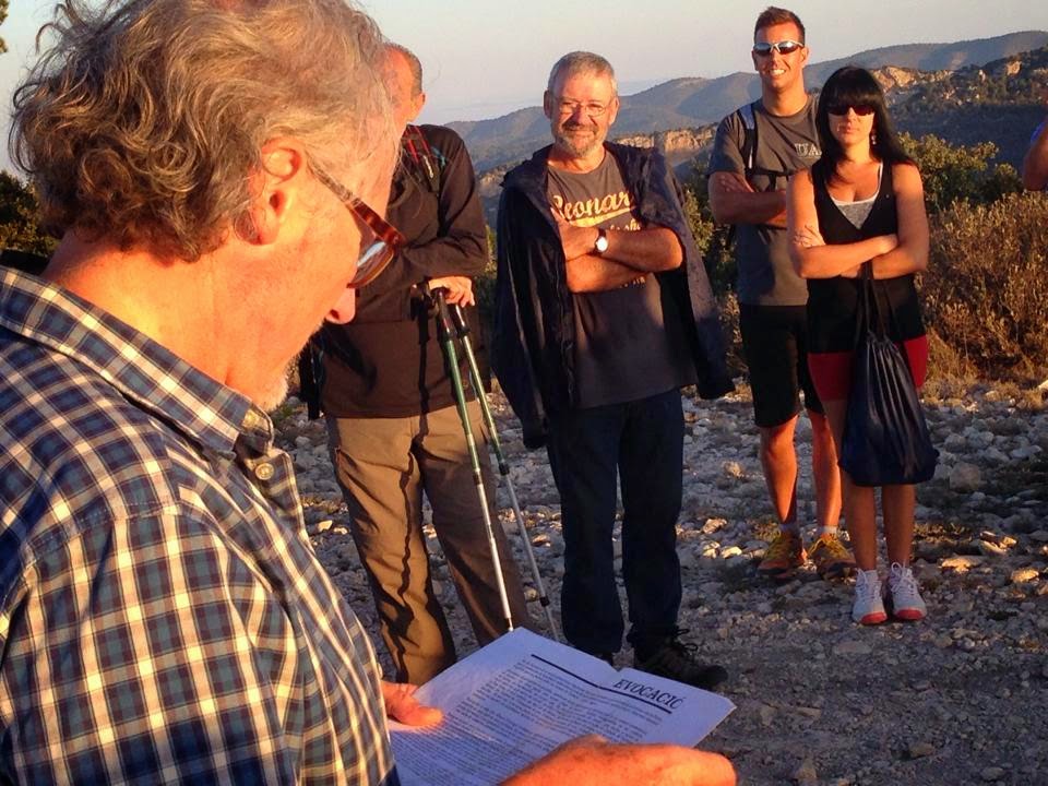 Hem caminat en la foscor de la nit, hem notat la frescoreta de la matinada, hem raonat sobre Valor durant l’ascensió, i dalt de l’alt de Guisop, i després de gaudit de la bellesa de les comarques del sud del País Valencià, hem llegit textos d’Enric Valor i, per acabar hem brindat en el seu honor. En aquesta ocasió el brindis ha anat a càrrec de Leandre Iborra, que ha pronunciat unes belles paraules: