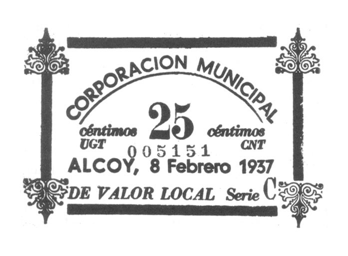 Un altre detall que no podem definir com a comercial, però que sí que podem considerar-lo com a previsor i capdavanter, fou el d’un col·leccionista de monedes locals. Les corporacions municipals decidiren emetre, el 1937, monedes fraccionaries per a facilitar el canvi que no hi havia en el comerç a la menuda. El document ens mostra un mestre nacional de Novelda que preveu que, en l’esdevenidor, aquestes monedes locals serien peces de museu que deixarien constància dels moments que estaven vivint. Tot fa pensar que el tal Fortunato Mira Pla es va adreçar per escrit a diferents consells municipals, com va fer a Cocentaina i els va demanar la seua particular moneda per a deixar memòria en un futur.