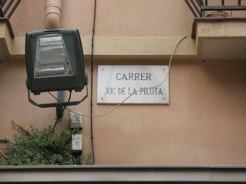 Evidentment, el trinquet mereixeria tota una entrada farcida de fotografies de l’espai i dels grans pilotaris. Recordem, però, que només volem mostrar la presència d’alguns jocs a la retolació urbana.