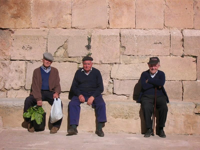 Antonio, Juanito Olària i Salvadoret, el germà, asseguts al Pedrís i no lluny d