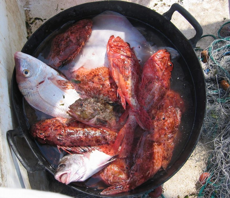 Més avall, però, hi trobem gallineta, de cap roig i molta espina, bo per fer caldo i brou, i desmollar amb molta cura, arròs a banda sense músics. Mireu, si no, aquest cabàs o cofa, corral de gallinetes amb una vaca al fons, rosat pagell i la boca oberta d’un corball.
