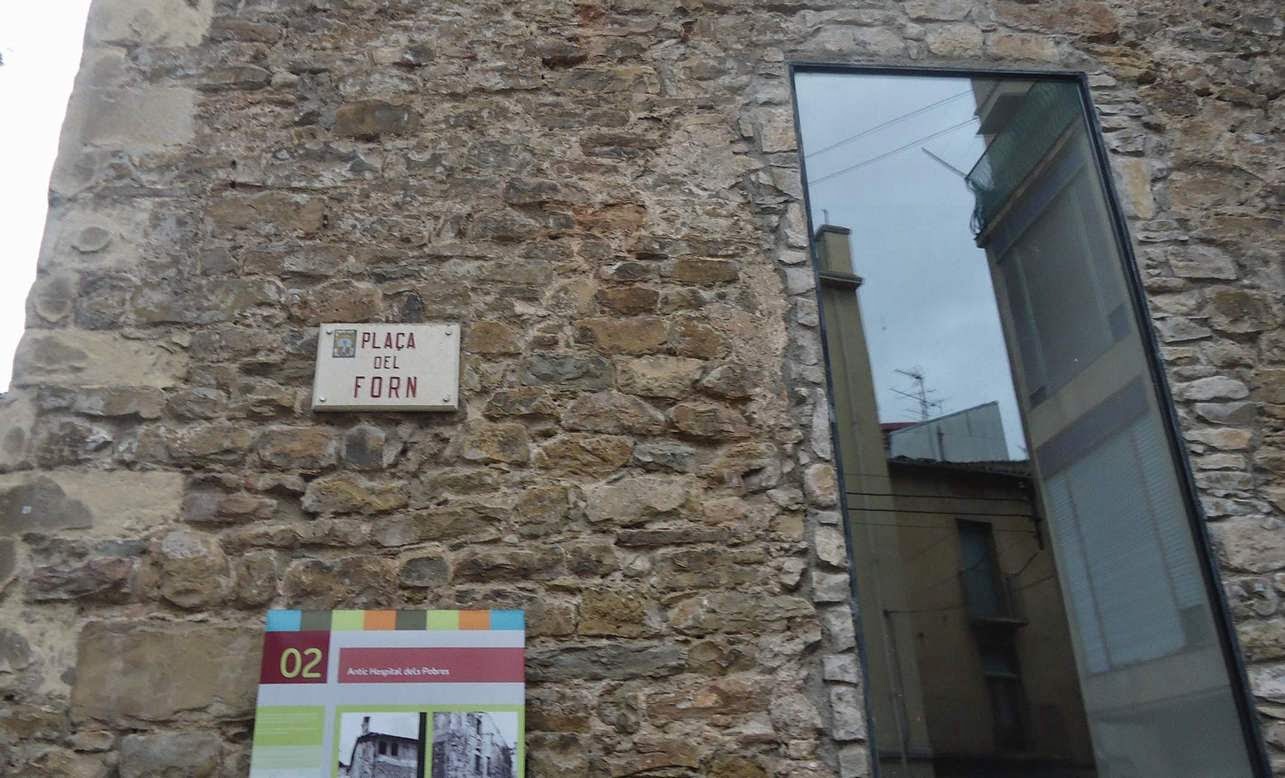 A Tremp, al Pallars Jussà, hi ha, al mateix mur de l’Hospitals dels Pobres, aquest rètol de la plaça del Forn…