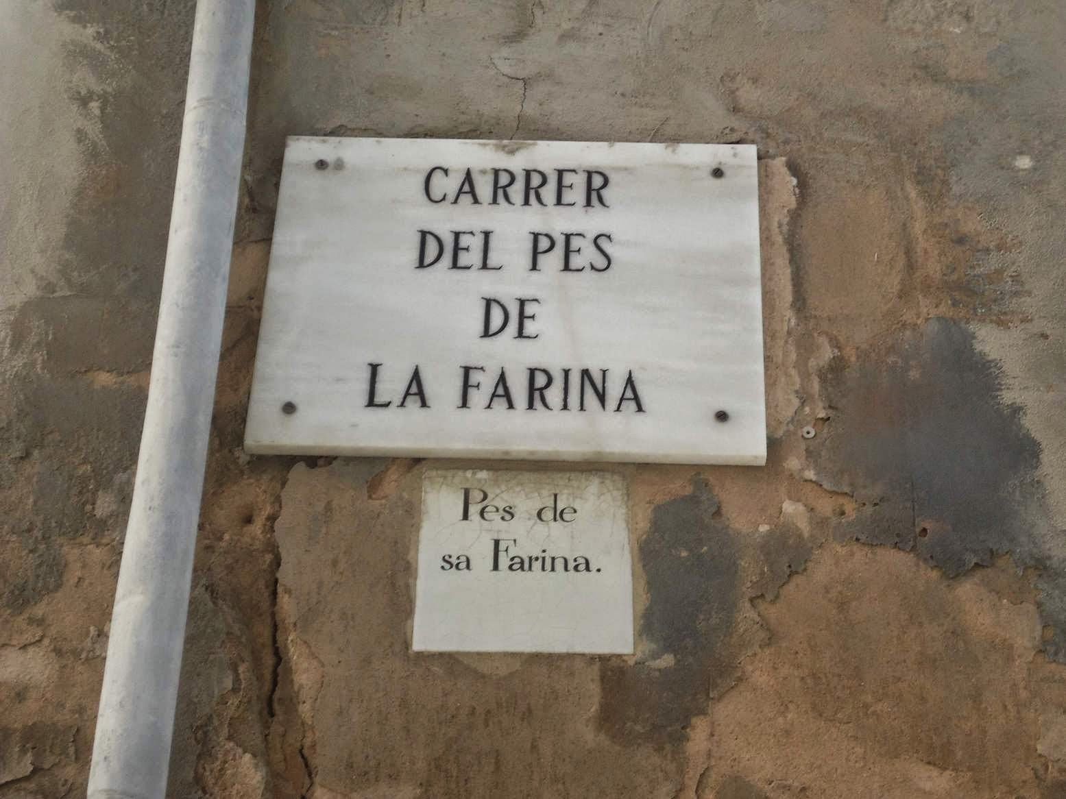 A Mallorca, amb una certa sensibilitat per la toponímia urbana, localitzem el mateix carrer, normativitzat i ‘amb una mica de sal’. Gabriel Bibiloni al seu ‘Els carrers de Palma‘ ens conta que era el lloc ‘on es pesava i es venia la farina. Notem que hi ha establiments semblants on es controlava públicament el pes d’altres productes (a fi d’evitar fraus), que han originat altres topònims urbans: