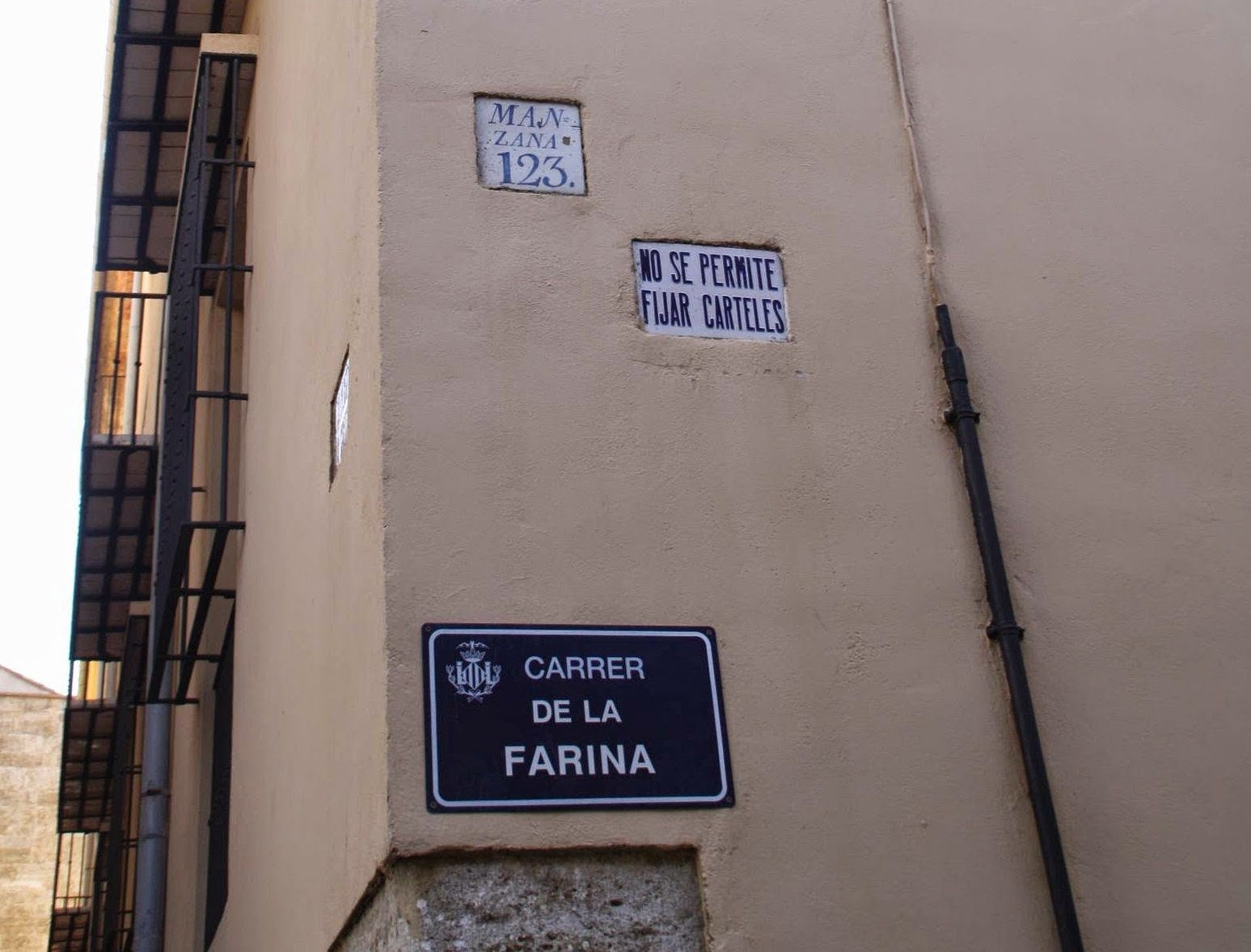 Al nucli antic de València, i no tardarem en tindre’n mostres, a més del carrer de la Farina i el del Pes de la Farina hi ha carrers com el del Repés, del Forn dels Apòstols, del Forn de l’Hospital o…