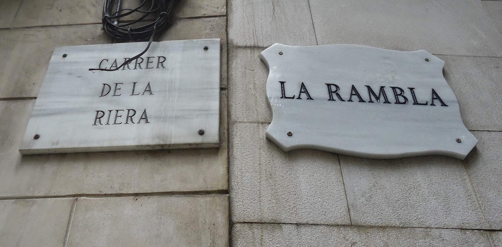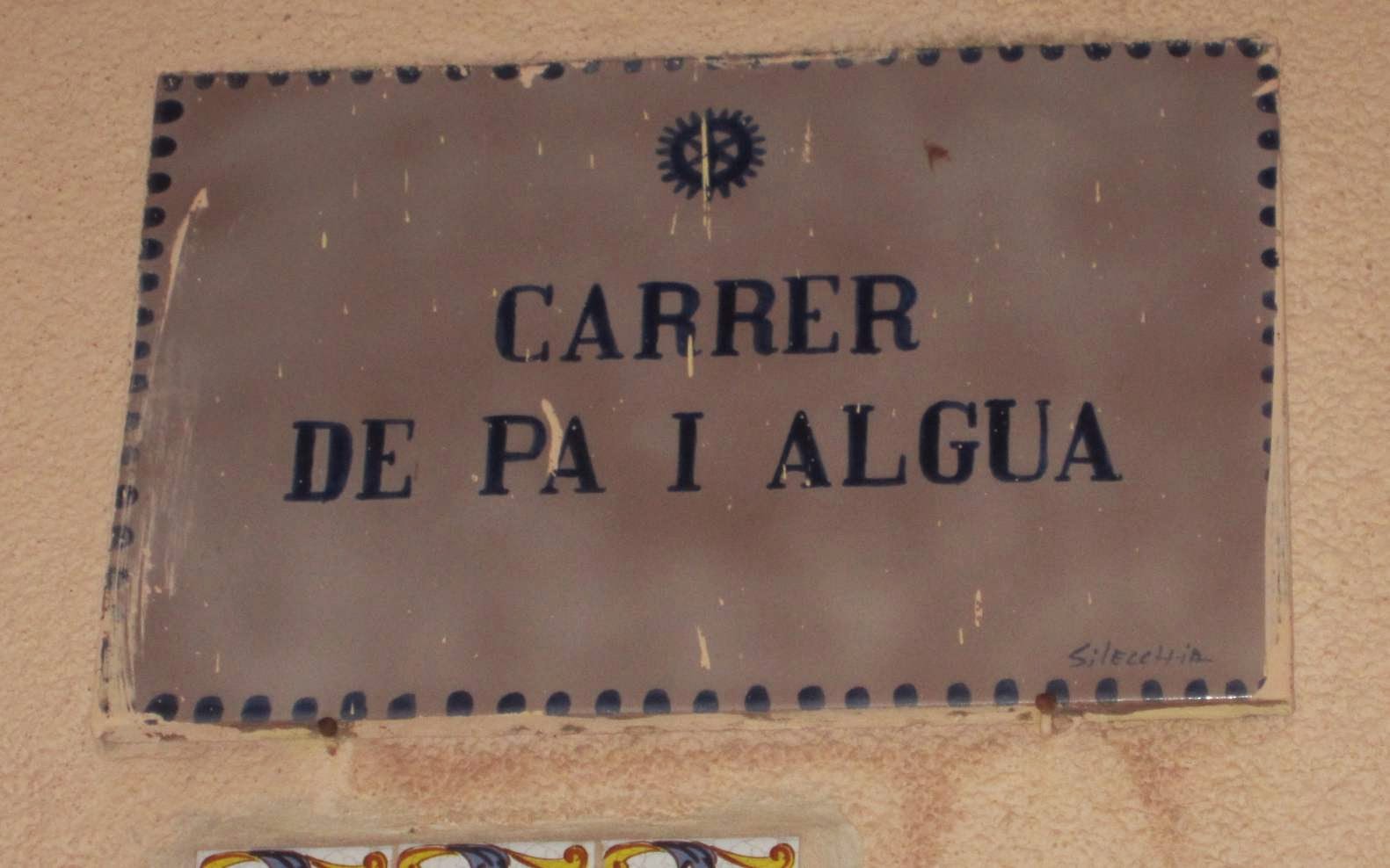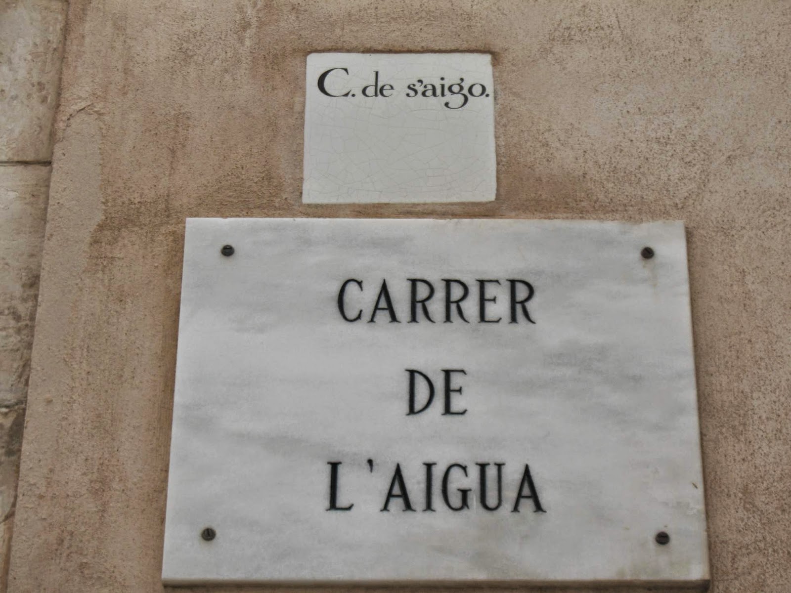 L’aigua és i ha estat un element fonamental als nuclis urbans i molts carrers ens ho recorden. A través dels rètols, a més, també ens adonem de la varietat de genèrics que en parlen i de la diversitat dialectal que enriqueix qualsevol llengua, com aquest de Mallorca, normativitzat i -al menut- amb la variant salada. Carrer de s’Aigo. A Ciutat també trobem un carrer de l’Aigua Dolça i un altre de l’Aiguamarina, saladeta.