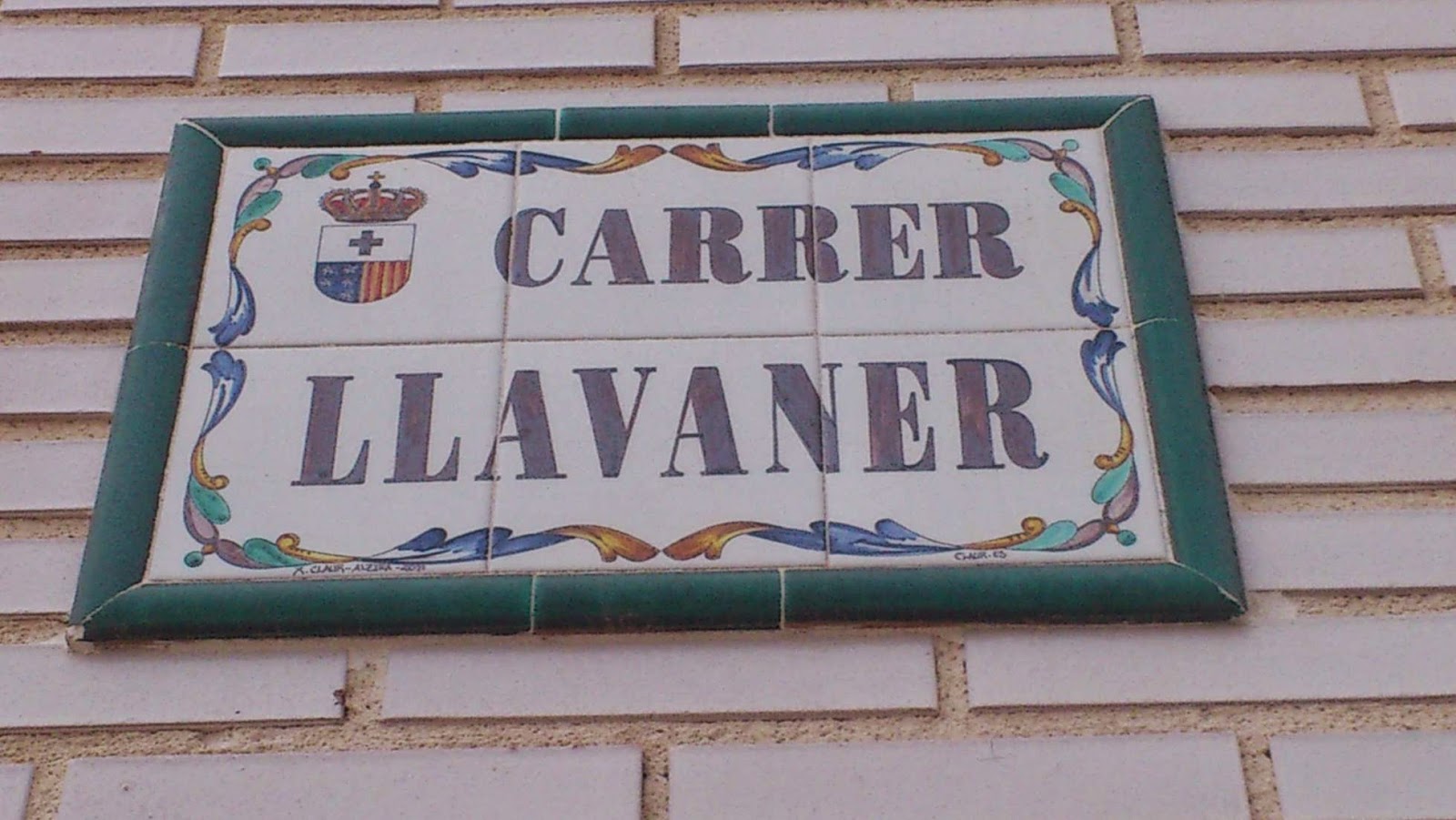 Recordem que llavaner era una variant que trobàvem per la zona de les Valls de Segó. Aquest rètol, amb por preposicional, ens ve de Quartell (foto de Pepa Vilar) Carrer Llavaner.