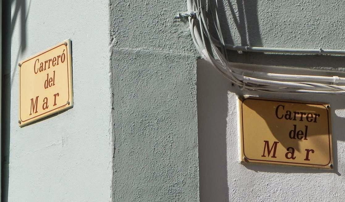 Amb la ‘M’ la mar salada. Àngela Buj ens aboca dos exemples d’immensitat blavosa, tot fent-nos saber que a Alcanar també la mar és dona. Carrer del (la) Mar i carreró del (la) Mar, a Alcanar.