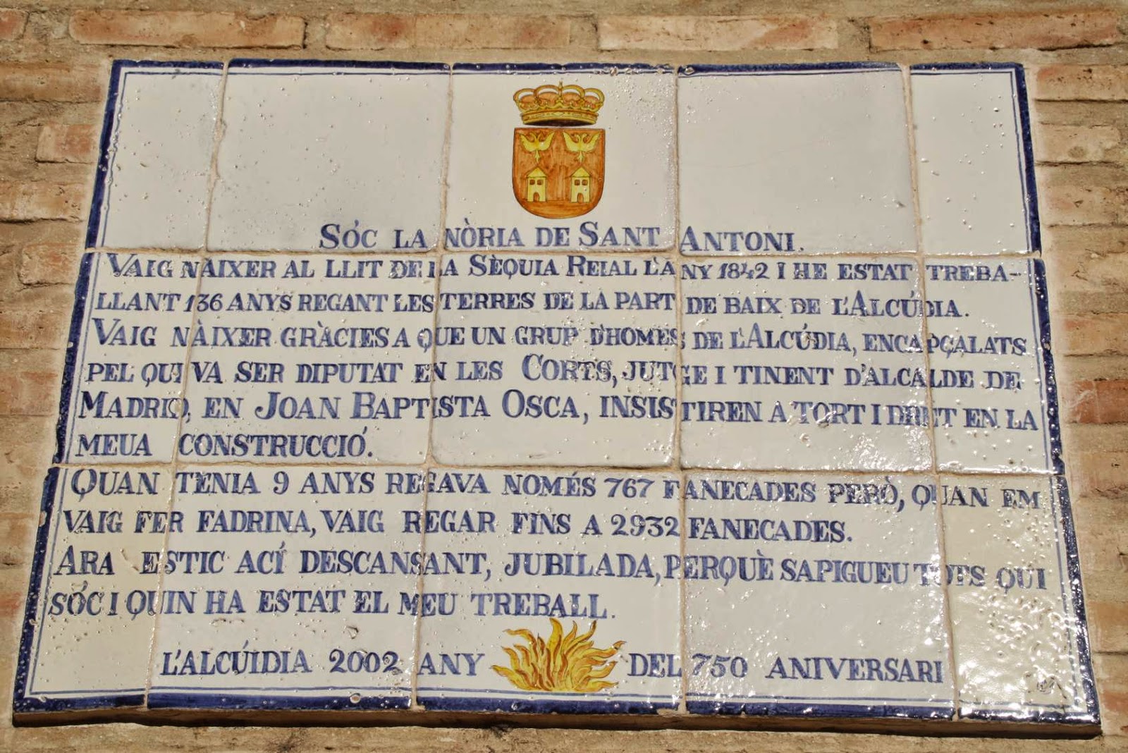 10.000 fanecades regades en sis termes ben bé mereixen els taulellets.