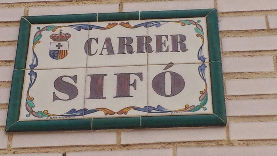 Pepa Vilar ens envia aquest rètol de Quartell, carrer del Sifó, tram d’una séquia que salva desnivells, com ara en creuar un camí.