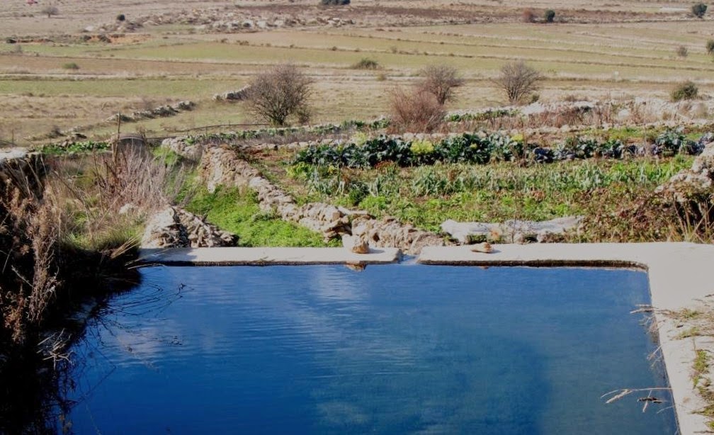 Des de la font o des d’una sénia, de vegades, l’aigua va a la bassa per regar segons tanda.