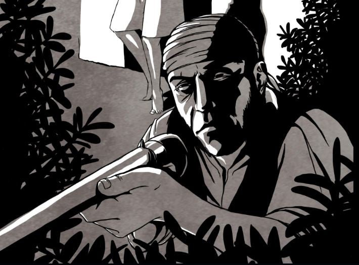 El pobre Cento va començar a sentir l’angoixa de la por, a sentir una suor freda al front. Si en matava un, quedava desarmat davant de l’altre. Si els deixava anar sense trobar res, es venjarien i li cremarien la barraca.