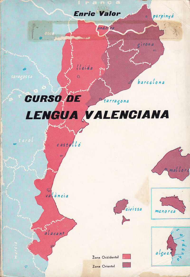Per la seua part, abans d’iniciar la gramàtica, Enric Valor incloïa una «Nota preliminar», amb la idea de tractar la qüestió del nom de la llengua i de justificar l’adopció del títol de l’obra –Curso de lengua valenciana–, tot i que «por razones culturales, demográficas, geográficas e históricas, este idioma es conocido y estudiado universalmente como ‘lengua catalana’. No obstante –afirmava–, hemos adoptado para este Curso el sinónimo de «lengua valenciana» respondiendo a una larga y fuerte tradición del País Valenciano». Seguidament, s’hi referirà a l’«Amplitud del área lingüística. Orígenes e importancia histórica», on delimitava l’extensió del domini lingüístic de la llengua catalana, que era reproduïda a la coberta amb un mapa de la divisió occidental i oriental.