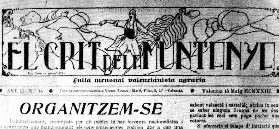 1923.- Últim número de la publicació valencianista El Crit de la Muntanya, tancada, poc després, per la dictadura de Primo de Rivera.