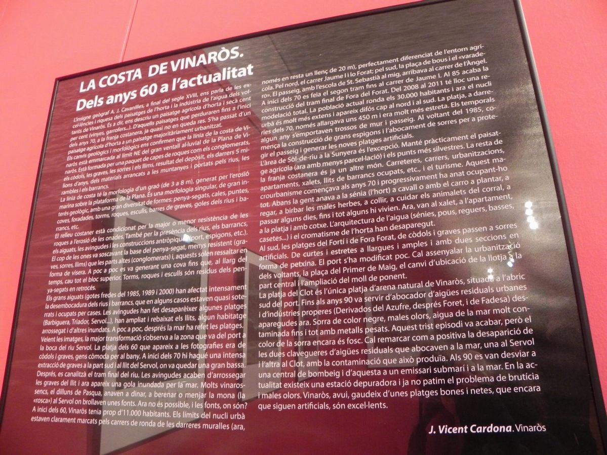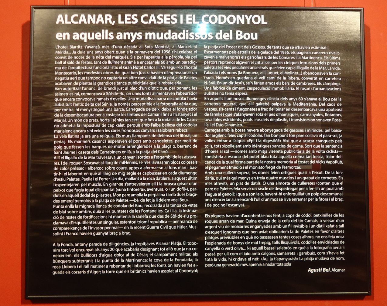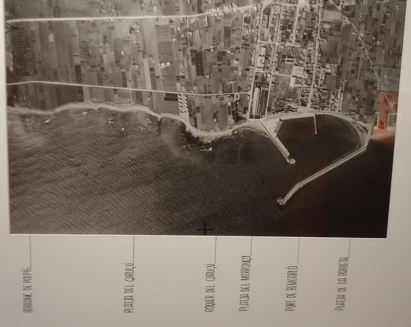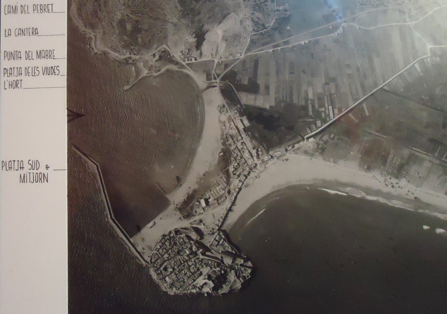 Les fotografies aèries que integren l’exposició, un total de 24, mostren la costa de Sant Carles de la Ràpita, Alcanar, Vinaròs, Benicarló i Peníscola l’any 1961, en el moment en què aquest procés tot just havia començat. Aquestes fotografies que formen part del fons del Museu de les Terres de l’Ebre, fruit de la donació d’un particular, mai han estat exhibides i constitueixen un testimoni que parla per ell mateix de com era el nostre litoral. A més a més, l’exposició incorpora textos d’erudits locals per a cada municipi , els quals evoquen aquest paisatge desaparegut, les activitats que en ell es duien a terme i com ells van viure en primer persona aquests canvis. Els diferents autors també reflexionen sobre el que ha significat aquest procés en el paisatge a primera línia de mar en el tram de costa, de 37km de longitud, a cavall de Catalunya i el País Valencià. Així mateix, per a l’exposició s’ha recuperat la toponímia de la costa anterior a aquest procés de canvi, que en molts casos va provocar la modificació dels topònims tradicionals, noms d’indrets que han perdurat en la memòria de la població local i que en altres casos van ser substituïts, en les darreres dècades, pels noms que les noves urbanitzacions i modes han anat fixant com a referents col·lectius.” (aguaita.cat)