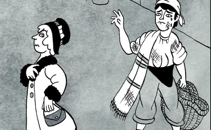 Era una bona dona que li feia senyals, indicava el fem que acabava d’amuntonar al costat d’una porta. Però, quina dona més simpàtica! El regal no era gran cosa. Pols, puntes de cigarret, corfes de creïlla i fulles de col: el fem d’una casa pobra. Nelet ho va arreplegar tot amb la satisfacció de l’aventurer que triomfa per primera vegada i va tirar avant, mirant els balcons, els pisos superiors, que ell anomenava cases grans, on es menjava bé i a la covarxa de la cuina hi havia tant com per a ficar la mà i el colze.