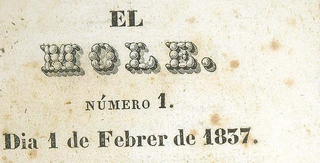 Em sembla que és hora de retre homenatge, si encara no s’ha fet, al periòdic El Mole, que fou fundat el febrer de 1837, totalment en el valencià de l’època, encara que hi havia algun escrit o paràgraf, molt pocs, en castellà. En aquella època, no hi havia normativa ortogràfica del valencià i potser tampoc importava massa al seu autor. El títol El Mole, amb tota seguretat, seria pronunciat amb la o oberta perquè significava el mot valencià, el motle, que podria ser alguna cosa així com el patró. Cal dir que el segon periòdic de l’Estat en una llengua no castellana va aparèixer a Barcelona mitja dotzena d’anys desprès, el 1843, i duia per títol Lo Verdader Català.