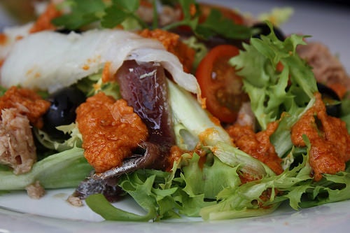 És com el xató, però només porta l’escarola i la salsa, que és gairebé la mateixa; les nyores han de ser pebrots de romesco i, per alguns llocs, hi afegeixen unes rametes trinxades de julivert.