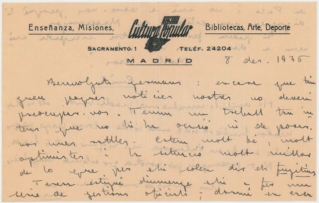 Les epístoles entre els germans Nicolau Primitiu Gómez i Emili Gómez Nadal donen a conéixer aspectes inèdits de la trajectòria vital de dos significatius personatges de la València republicana i de postguerra, que van viure sempre en ciutats o països diferents. Una investigació que, a més, aporta llum sobre el germà menys conegut, Emili, que va viure l’exili a França.
