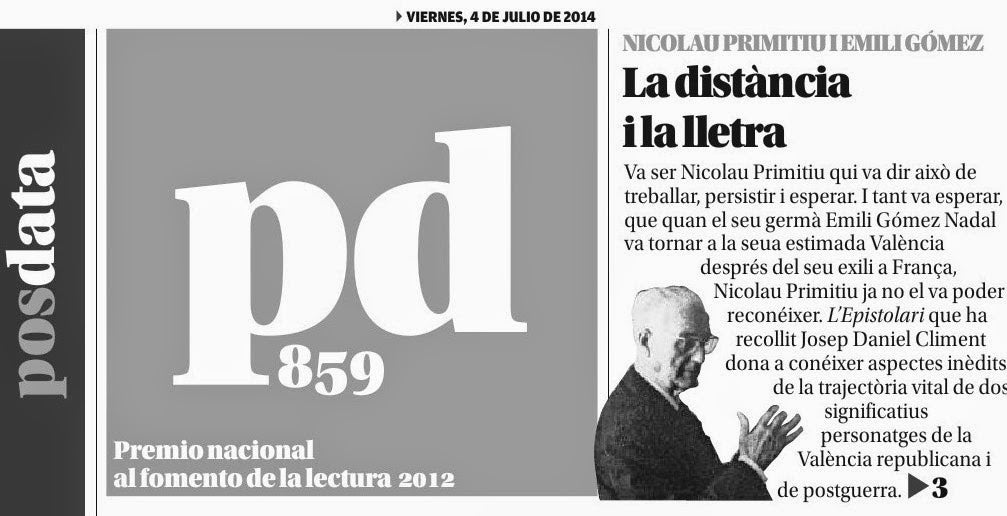 Article publicat a Posdata 859, Levante-EMV, 4 de juliol de 2014, p. 3.