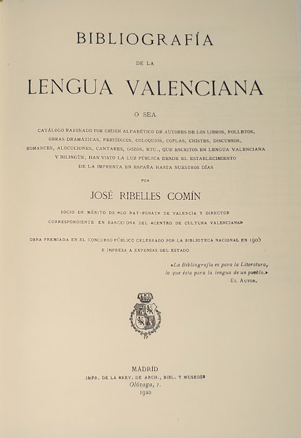 Ací teniu el Volum I de la Bibliografia de la Lengua Valenciana