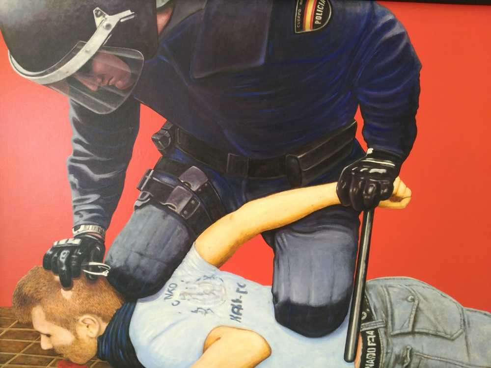 El segon riu que recorre l’obra de Miró, sedimentada amb terra d’al·luvió i és la principal font d’inspiració del pintor, són les desigualtat socials. La lluita de l’ésser humà per guanyar la llibertat, per assolir els drets fonamentals. I Miró, en aquest món global i globalitzat, només ha d’estar amatent als mitjans de comunicació per a captar centenars d’imatges d’arreu del món, que són el punt de partida de part de la seua obra. En aquesta exposició de ‘La Base’ ho podem constatar en les sèries ‘Mani-festa’ i ‘Burka-Políptic’. Miró dedica un bon grapat de quadres a mostrar-nos aquestes lluites socials en manifestacions de tot tipus: les que reivindiquen la llibertat d’expressió (‘Prohibit Pensar’); un habitatge digne (‘STOP desnonaments’); el dret de vaga (‘El derecho de huelga no se toca’); per l’ensenyament públic (‘No a la enseñanza franquista. Dimisión Wert’); les lluites de les dones per aconseguir els mateixos drets que homes (‘No a leyes machistas i medievales’, ‘Burka-Políptic’); contra la corrupció dels polítics (‘No més Gürtel’); la política d’austeritat de la Troica (‘Troika da desemprego’); la pobresa (‘Si hay hambre, no hay hombre’); la voracitat dels bancs que guanyen milions d’euros i són rescatats amb diners públics (‘Su botín es mi crisis’). En definitiva, Miró pinta, com ja hem dit adés, allò que no li agrada però, a sobre i amb tot plegat, fa art. I ho pinta per aquest esperit crític, inconformista, contestatari i rebel que impregna el seu pensament i el seu tarannà.