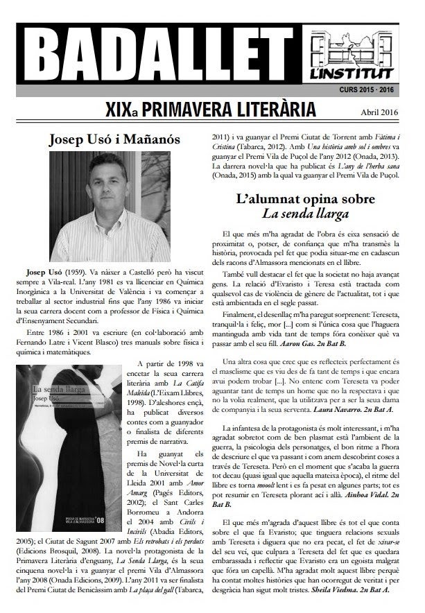 Sobre les altres divuit Primaveres Literàries i coses de llibres a l’Institut, podeu consultar el següent enllaç imatgies.blogspot.com.es