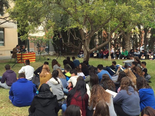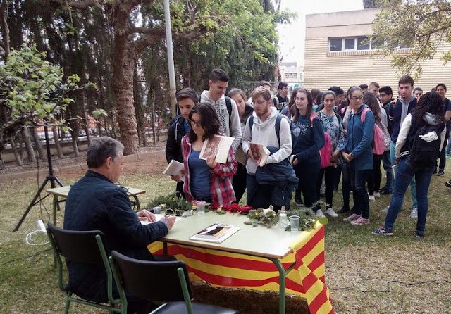 I després, l’alumnat, com cada any, guaità per recollir uns mots amables, unes paraules que feren més seu el llibre.