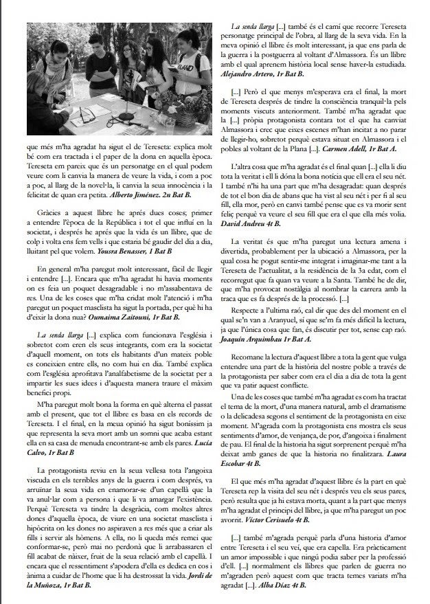 Tot el Seminari, més que departament -per si mos sén Evaristo-, va retratar l’esdeveniment. També hi col·laborà Laura Navarro, de 2nBat.