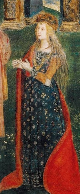 “Disputa de Santa Caterina d’Alexandria. Pintura de Pinturicchio del 1500. La cara de la santa és la de Lucrècia Borja, el turc del cavall és el duc Joan de Borja, de Gandia i dos xiquets són Jofre de Borja i Sanxa d’Aragó, segons alguns estudiosos”