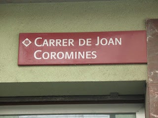 En dirigir-nos a l’oficina d’Informació i Turisme, casualment, vam aparcar el cotxe davant mateix de la placa del carrer de Joan Coromines; tota una sort. Ens va sobtar la troballa i la seua centralitat relativa perquè, val a dir-ho, la majoria de carrers de lingüistes localitzats fins ara solen ocupar zones perifèriques de nova creació. Reus, però,… Reus és una altra cosa.