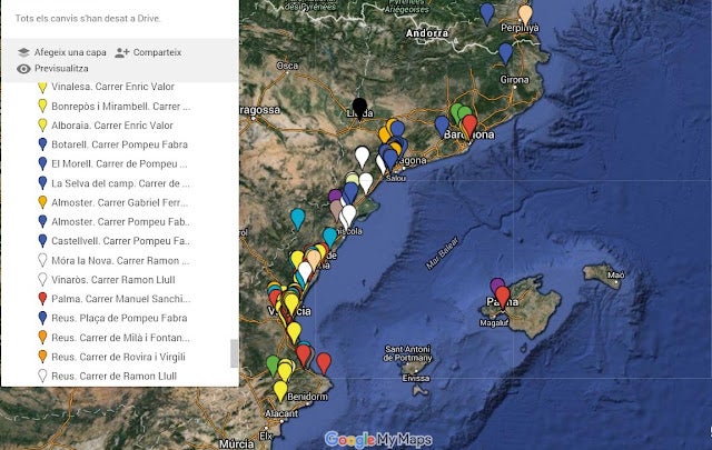 A 29 de juny, Sant Pere i festa major a Reus, comptem amb 171 vials urbans fotografiats, 59 dels quals han estat enviats per col·laboradors diversos. Cal esmentar l’amic Antoni Garcia Osuna que, tret del Cap i Casal —d’on ja n’havíem fotografiat les plaques dels carrers— ha recollit les comarques de l’Horta i del Camp de Túria. Una dotzena més de col·laboradors ens han enviat alguna o diverses fotografies d’altres indrets dels nostre domini lingüístic. Desitgem que siguen moltes més les col·laboracions que ens arriben d’arreu.