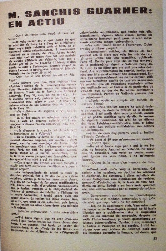Aquesta entrevista al «diario decano de la región valenciana» fou una de les primeres de les prop de trenta que l’il·lustre professor concedí al llarg de la seua vida a diversos periòdics i revistes. D’entrada hem de constatar que la majoria de les entrevistes corresponen a fets significatius de la vida de Sanchis Guarner, com ara el moment de la publicació d’un llibre, com l’esmentat abans, o el de La ciutat de València (1972), que tingué tanta repercussió que propicià l’aparició de tres entrevistes en les quals comentava diversos aspectes de l’obra. De vegades, el pretext per entrevistar-lo estava relacionat amb altres assumptes com ara la creació del Departament de Lingüística Valenciana de la Facultat de Filologia i el fet que ell ocupés la càtedra corresponent, o els atacs dirigits contra la seua persona per elements incontrolats i feixistes de la nostra societat allà per l’any 1978, i fins i tot, qüestions més tècniques però de gran transcendència política, com era el funcionament de la Comissió Mixta que havia de regular la incorporació del valencià a l’ensenyament. En altres ocasions, l’entrevista responia al desig de la publicació de referir-se a un esdeveniment significatiu, com ara la celebració del 9 d’octubre.