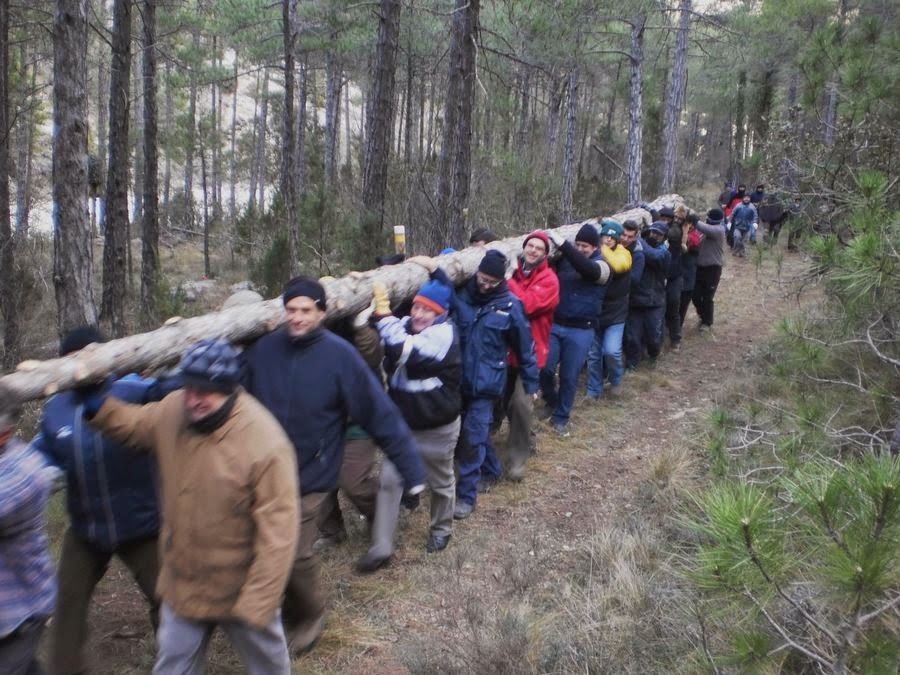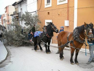 Esmorzar. I els animals aniran a portar fins el Calvari totes les carrasques (les tronques) que han triat al bosc. A ròssec i amb el coneixement i la competència necessàries aniran ajuntant “la tronca”. I després mudaran com cal tants animals com vinguen a la provessó de la vesprada.