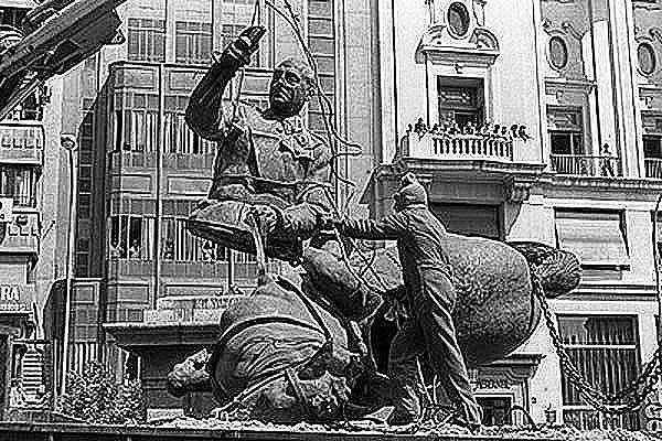 Ximpleries, xe. Per què han de llevar el Caudillo de la plaça de València. Què li fa tenir el cavall i el Caudillo? Si és un monument històric. Quina pena dóna això. Pot ser un fill de puta però forma part de la història. Per què l’havien de treure, són com eixos de l’Irak que van treure Sadam Hussein. Són parts de la historia.