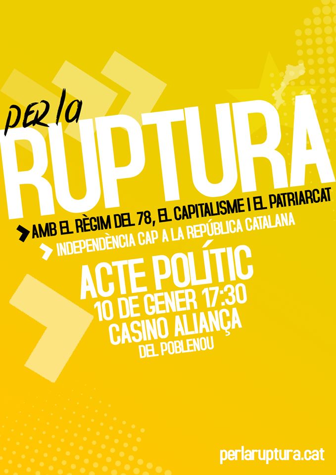 Finalment, la unitat d’un bloc d’esquerres, rupturista, no és només un problema quantitatiu. El demanem des de fa anys, i per això, al voltant de punts de ruptura, vam entrar a l’AE, malgrat les nostres diferències amb la CUP. El demanem perquè és una necessitat de les lluites dels i les treballadores, una necessitat imperiosa que permeti resoldre les misèries que ens han portat fins aquí i garanteixi la llibertat del poble. Ens alegrem que avui estiguem aprofundint aquest camí.