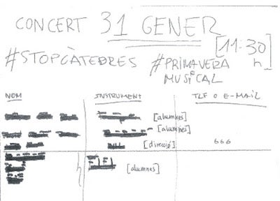 Full penjat al tauler d’anuncis del centre amb la inclusió del nom del director en el llista d’alumnes que secunden la protesta i assenyalant amb la xifra 666.