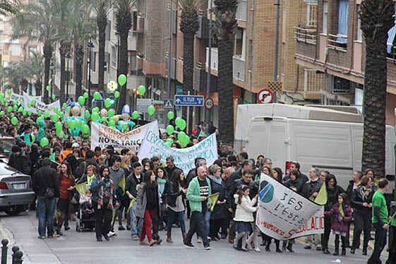 Mentrestant, s’havia creat la Trobada de Plataformes Comarcals, on confluíem amb la resta de Plataformes del País Valencià. Una reunió al mes, concentracions i manifestacions a València… i una amistat que durarà per a sempre. Davant les eliminacions definitives, vam decidir que ens havien d’escoltar a conselleria sí o sí, així que vam decidir fer una acampada a les portes de Conselleria d’Educació. Acampada per l’Escola Pública en ple juliol. 40 graus a l’ombra… Activitats, xarrades, concerts, contacontes, cartes a la consellera, mural per l’escola que volem… Vos convide a veure la nostra pàgina de facebook i veureu les imatges. Impressionant.