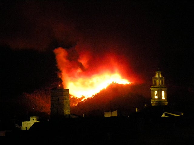 He vist una fotografia de satèl·lit, molt esfereïdora, on la silueta del mapa de la costa mediterrània mostra una taca grisa que cobreix les muntanyes de l’Espadà. Mentre escric aquest article m’arriben notícies d’un altre incendi a Tavernes (la Safor) i un altre en unes naus industrials a l’Olleria (la Vall d’Albaida). Continue prement tecles indignat i sona per la finestra el brogit constant, inacabable, de les brigades aèries. Faig ullades a les reaccions ciutadanes i dels afectats, a través de les xarxes socials. A primeres hores del matí, les avionetes i helicòpters han reprès la ruta del fum, de la desesperació, cap a la Serra d’Espadà. Durant la nit van romandre combatent el foc efectius del Consorci Provincial de Bombers de la Diputació de Castelló, Generalitat i la Unitat Militar d’Emergències. En les hores anteriors del dia s’hi havien sumat Bombers de la Diputació de València, les Brigades de Reforç d’Incendis Forestals de Conca i Daroca, i brigades de Catalunya i Aragó. A la matinada eren al voltant de 1.000 hectàrees afectades, havent cremat termes d’Artana, Alcúdia de Veo i Tales, en perill d’afectar els municipis d’Onda, Eslida i Ahín. El càlcul de la desfeta, a hores d’ara, ja necessita actualitzar-se.
