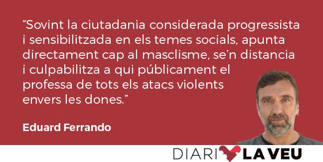 Sovint la ciutadania considerada progressista i sensibilitzada en els temes socials apunta directament cap al masclisme, se’n distancia i culpabilitza a qui públicament el professa de tots els atacs violents envers les dones. Aquesta actitud de mirar el culpable evident és ben nostrada i ens fa sentir molt millor, però evidentment no ha de ser la resposta a un problema de tanta envergadura com aquest. Un detall paradigmàtic i força significatiu és la semàntica de dos mots estretament relacionats i que evolucionen de manera diferent tot i la idèntica sufixació. Tots sabem què és un mascle i què és una femella, no hi hauria cap dubte a l’hora de definir ambdós conceptes. En canvi, quan els hi afegim el sufix -isme el seu camp semàntic s’allunya i els empenta cap a un marc social que, malauradament, els enfronta. Notem com el mateix DNV reconeix el masclisme com el “conjunt d’activitats i pràctiques sexistes discriminatòries per a la dona”, mentre que el feminisme el recull com un “moviment que té com a finalitat aconseguir la igualtat dels drets de la dona respecte als de l’home”, és a dir, que tenim que la sufixació de què parlem transcendeix la lògica i ens trasllada directament al bell mig d’un problema evolutiu de dimensions força preocupants. Com hem arribat a aquesta situació? Les raons, per òbvies, les estalviaré, el que cal ara és intentar solucionar el fet.