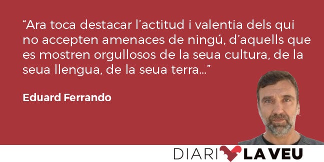 I, com sempre, cal escoltar un poble que ha demostrat en moltíssimes ocasions que desitja reclamar lliurement els seus drets i els trets que considera propis. I això, malgrat la intolerància patent de bona part de la ciutadania valenciana, no ha de ser motiu d’enfrontament.