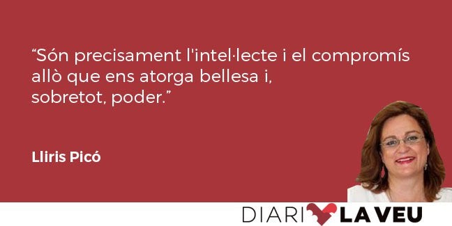 No us penseu, però, que pretenc posar en qüestió la intel·ligència i la formació de les belleses, models i misses, perquè estic segura que la boniquesa no està renyida amb la cultura. El que qüestione severament és que algunes dones exposen la imatge i reivindiquen el paper de la dona en la festa i en la societat, sense ser conscients que la matèria grisa també es pot passejar per la passarel·la i exposar als micros i a les càmeres; pequè són precisament l’intel·lecte i el compromís allò que ens atorga bellesa i, sobretot, poder. Autonomia. Independència.