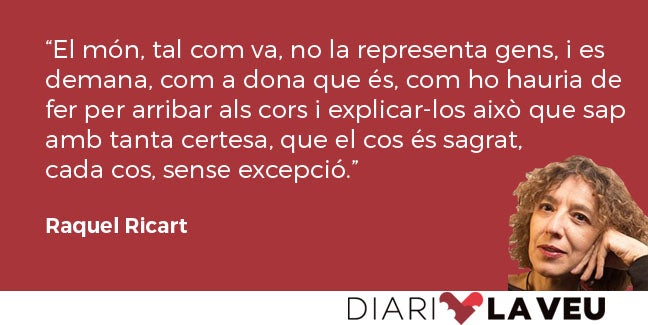 El món, tal com va, no la representa gens, i es demana, com a dona que és, com ho hauria de fer per arribar als cors i explicar‑los això que sap amb tanta certesa, que el cos és sagrat, cada cos, sense excepció.