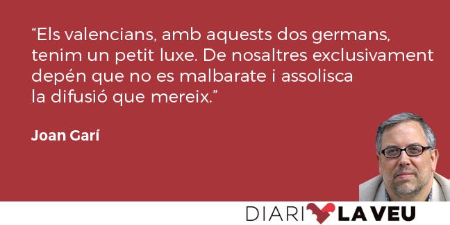 Els valencians, amb aquests dos germans, tenim un petit luxe. De nosaltres exclusivament depén que no es malbarate i que s’assolisca la difusió que mereix.