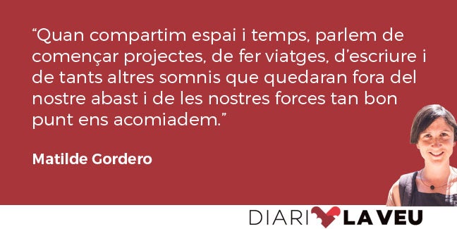 Quan compartim espai i temps, parlem de començar projectes, de fer viatges, d’escriure i de tants altres somnis que quedaran fora del nostre abast i de les nostres forces tan bon punt ens acomiadem. Almenys fins que ens tornem a trobar i reprenem la il·lusió. Com si fos un jersei que teixim cada vegada que ens reunim, com el sol quan et toca de prop.