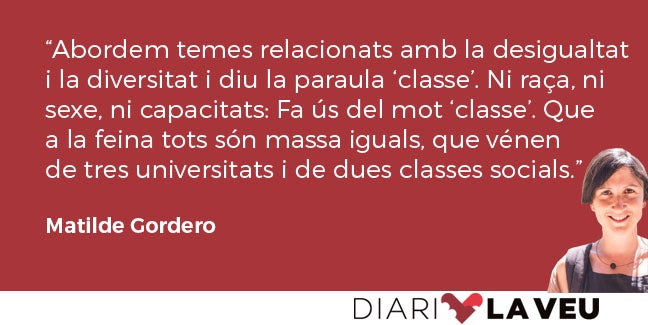 Treballa a una cinquena planta d’un edifici de l’Eixample. Des de la seua finestra es veuen terrats bonics. En el repeu té molts llibres. L’A. parla bé i té tot el temps de món per a mi, que l’entreviste. Abordem temes relacionats amb la desigualtat i la diversitat i diu la paraula classe. Ni raça, ni sexe, ni capacitats: Fa ús del mot classe. Que a la feina tots són massa iguals, que vénen de tres universitats i de dues classes socials. A mi em sobta i em sent incòmoda, però pense i pense i m’alegre que almenys algú diga les coses pel seu nom, perquè el que no es diu no existeix. Perquè negar les classes és negar que el punt de partida no és el mateix per a tots.
