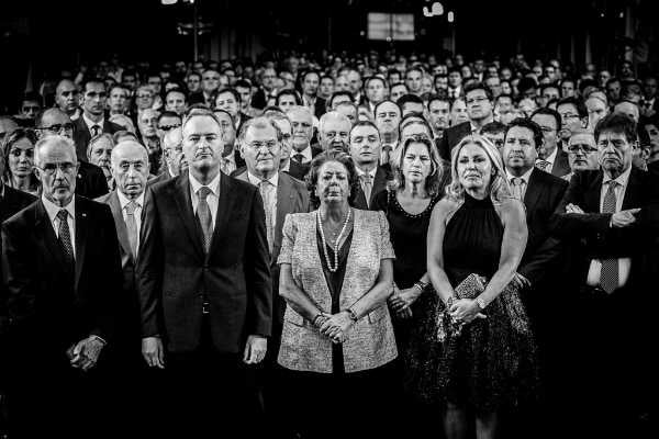 La tardor de 2013, el PP va presentar un altre manifest: “Pacto por la sociedad valenciana”. Ho va fer en el marc del significatiu edifici Veles i Vents, el mateix des d’on tota la bona societat de la ciutat va veure les ruïnoses curses de la Formula 1 mentre que, a les seues espatlles, queia el Cabanyal a trossos, víctima de la desídia i de la venjança política de Barberà. El hapenning el va presidir Alberto Fabra i va estar amenitzat per Núria Roca i per Cristina Tàrrega. El país, llavors, es dessagnava econòmicament igual que un porc degollat. La corrupció enquistada en el PP, lligada a una manera desastrosa d’entendre la gestió de la cosa pública, havia tingut molt a veure, encara que a quasi ningú no li importara. D’ací que Alberto Fabra no tinguera cap problema en tirar la culpa del desastre, exclusivament, a la crisi. El mateix va fer Rita Barberà que, a més, va acusar maliciosament l’esquerra de voler desprestigiar la “Comunidad”. Per a la pitjor alcaldessa de les darreres dècades, malgrat la propaganda, la corrupció simplement no existia, era una mentida del KGB de l’URSS. La crisi, una conspiració dels cubans de Castro. Tot plegat, Barberà no feia més que imitar la serp d’Esteban González Pons quan, uns anys abans, va assenyalar els catalans –i els croats, potser?- d’estar al darrere de les denúncies de corrupció que arribaven d’Europa a compte de l’orgia de la rajola. En aquell mateix acte es va demanar un finançament més just –després de més de vint anys d’agenollar-se davant de Madrid- i es van treure a passejar, com d’habitud, tots els tòpics arnats de la valenciania (quin fàstic, quina vergonya que l’exaltació “matriotera” del socarrat i el petard hagen de substituir permanentment la raó!) Al final, va haver foto de grup. Una foto com les que promocionen les pel·lícules de zombis i on, ves per on, es poden veure alguns personatges avui políticament cadàvers, a més d’imputats per corrupció o a punt de caramel. La mamarratxada va eixir per més de 25 mil euros segons va denunciar el sempre diligent socialista, Rafael Rubio.