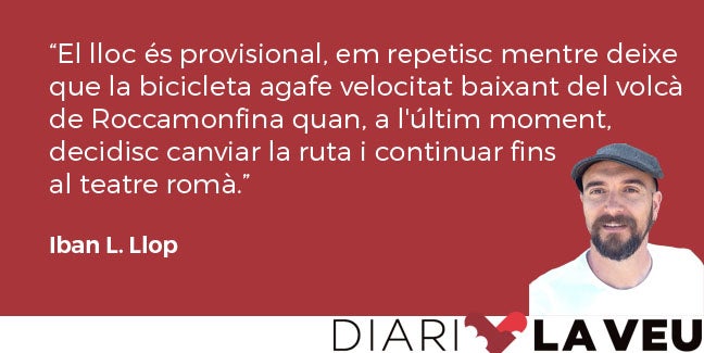 El lloc és provisional, em repetisc mentre deixe que la bicicleta agafe velocitat baixant del volcà de Roccamonfina quan, a l’últim moment, decidisc canviar la ruta i continuar fins al teatre romà. Fa només vint anys que es van poder reprendre les excavacions a la zona i ara el treball realitzat ens mostra un dels teatres més importants de la Campània en l’època imperial, un teatre que podia encabir potser fins a deu mil persones.