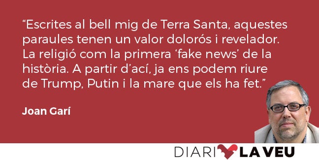 Escrites al bell mig de Terra Santa, aquestes paraules tenen un valor dolorós i revelador. La religió com la primera fake news de la història. A partir d’ací, ja ens podem riure de Trump, Putin i la mare que els ha fet.