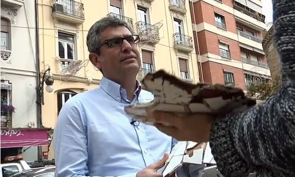 El protagonista del vídeo, un treballador –encara– de la televisió pública valenciana, conduïa fins a la fi de les emissions un programa en prime time, classificat com a “periodisme d’investigació i denúncia”, que va tractar de manera aprofundida temes com ara el turisme de Benidorm, la parapsicologia, l’operació biquini, l’afició per la dansa, la vida del bou Ratón, els hotels naturistes o les cigarretes electròniques, a més de preguntar-se si l’oratge “s’ha tornat boig” i quina és, en realitat, “l’autèntica paella valenciana”. En aquest cas concret, fins i tot va mostrar-nos una de ben original, potser la més original del planeta, en què l’arròs –convenientment acolorit– dibuixava la cara de l’alcaldessa de València, Rita Barberà.
